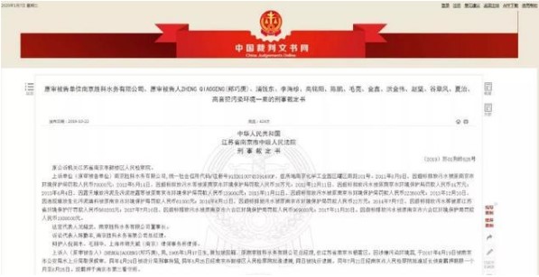 日前,南京市中级人民法院评选了2019年10大典型案件。其中一起为,南京胜科水务有限公司(统一社会信用代码/注册号91320100745391480F,住所地南京化学工业园区罐区南路101号)多次接收企业的高浓度废水,未经处理直排长江。其间,还人为篡改监测数据,逃避环保部门监管,最终,涉事污水处理公司被判处罚金和赔偿的环境修复费用达5.2亿元。